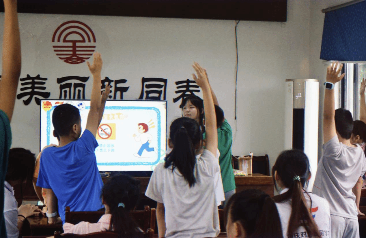 2025年7月10日,重庆对外经贸学院跨境商务学院“探寻同春红色路,共筑青春爱国梦”爱国主义教育实践团上午在同春村村委会活动教室开展安全教育小课堂,为孩子们的暑期安全保驾护航。