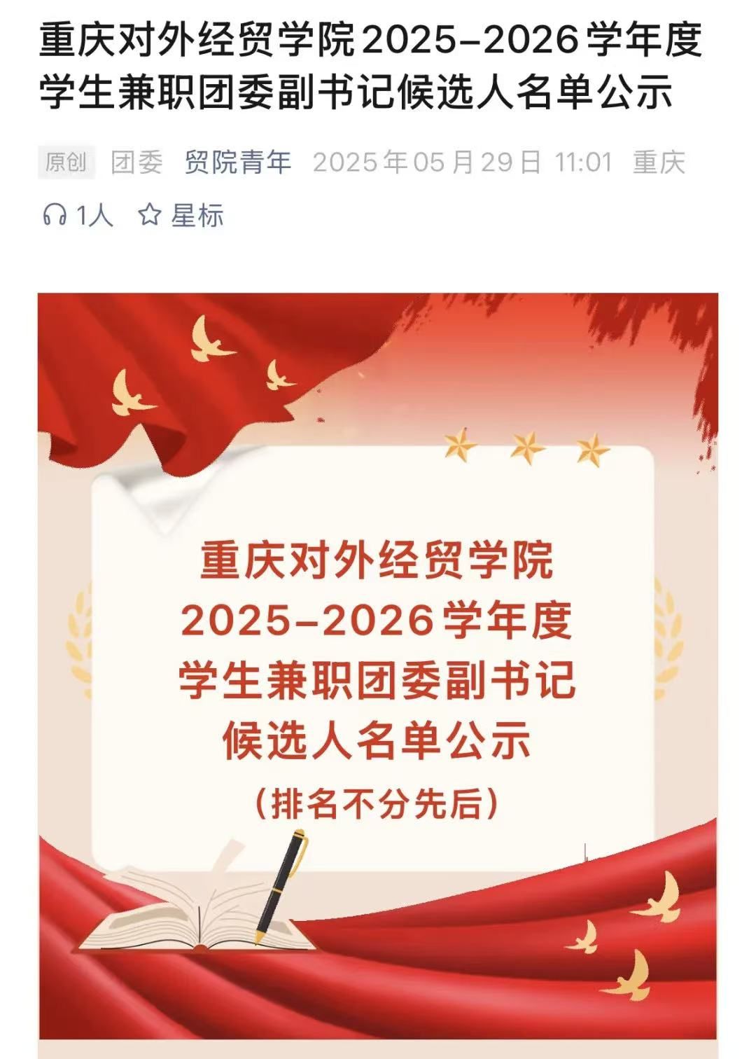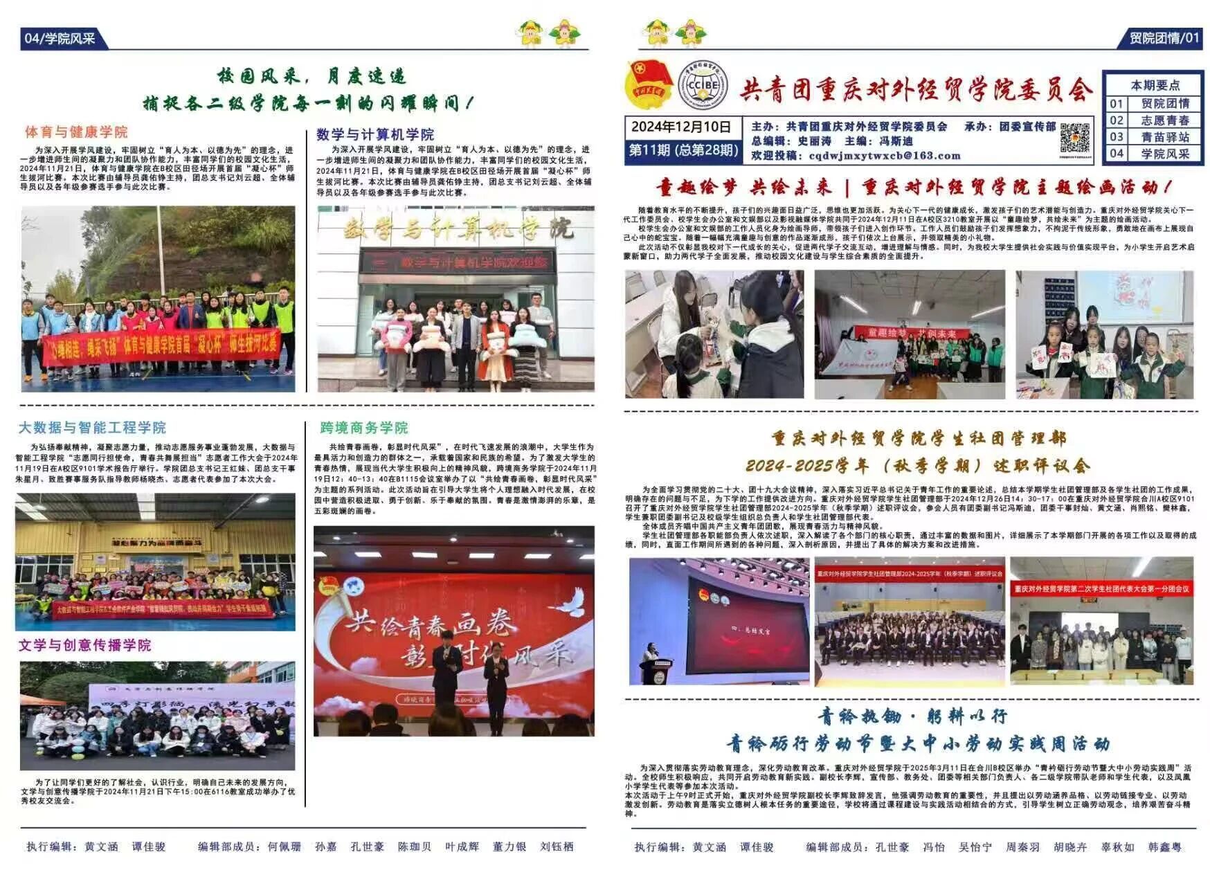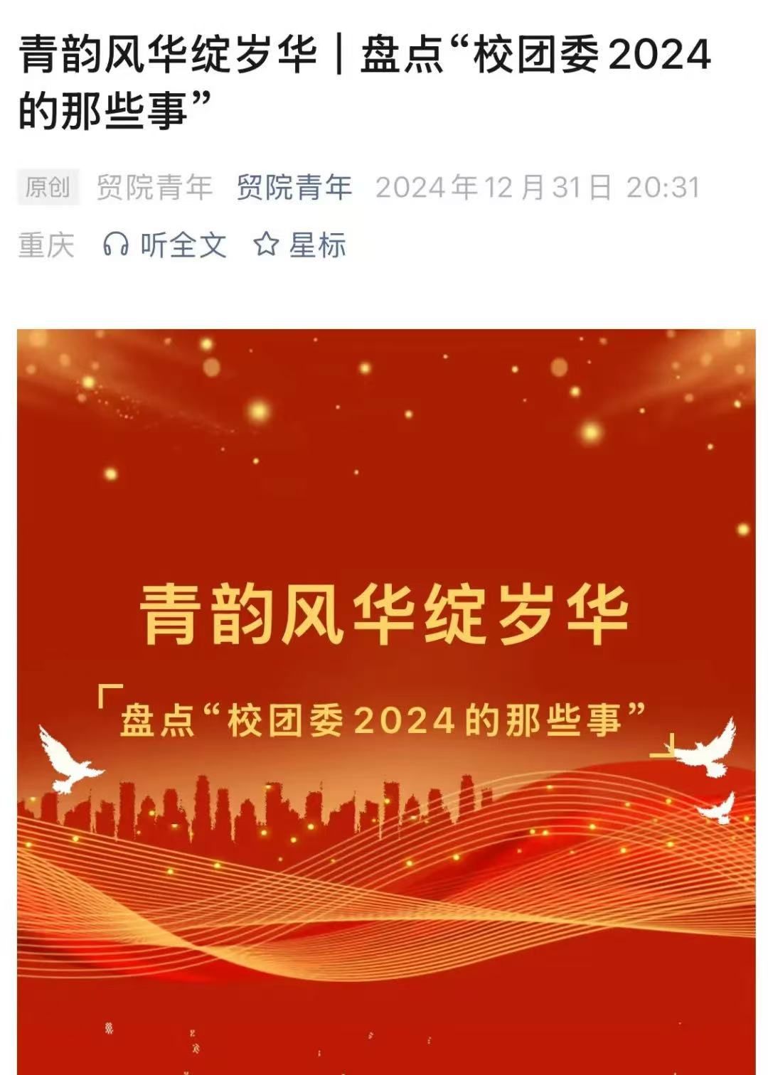 我们是用版面讲好故事的人——负责微信公众号、视频号运营以及“贸院青年”公众号开设的贸院团情、荣誉展示、团务工作等板块的推文工作。追求审美在线、细节控,拒绝无聊排版,只做有温度的推送!