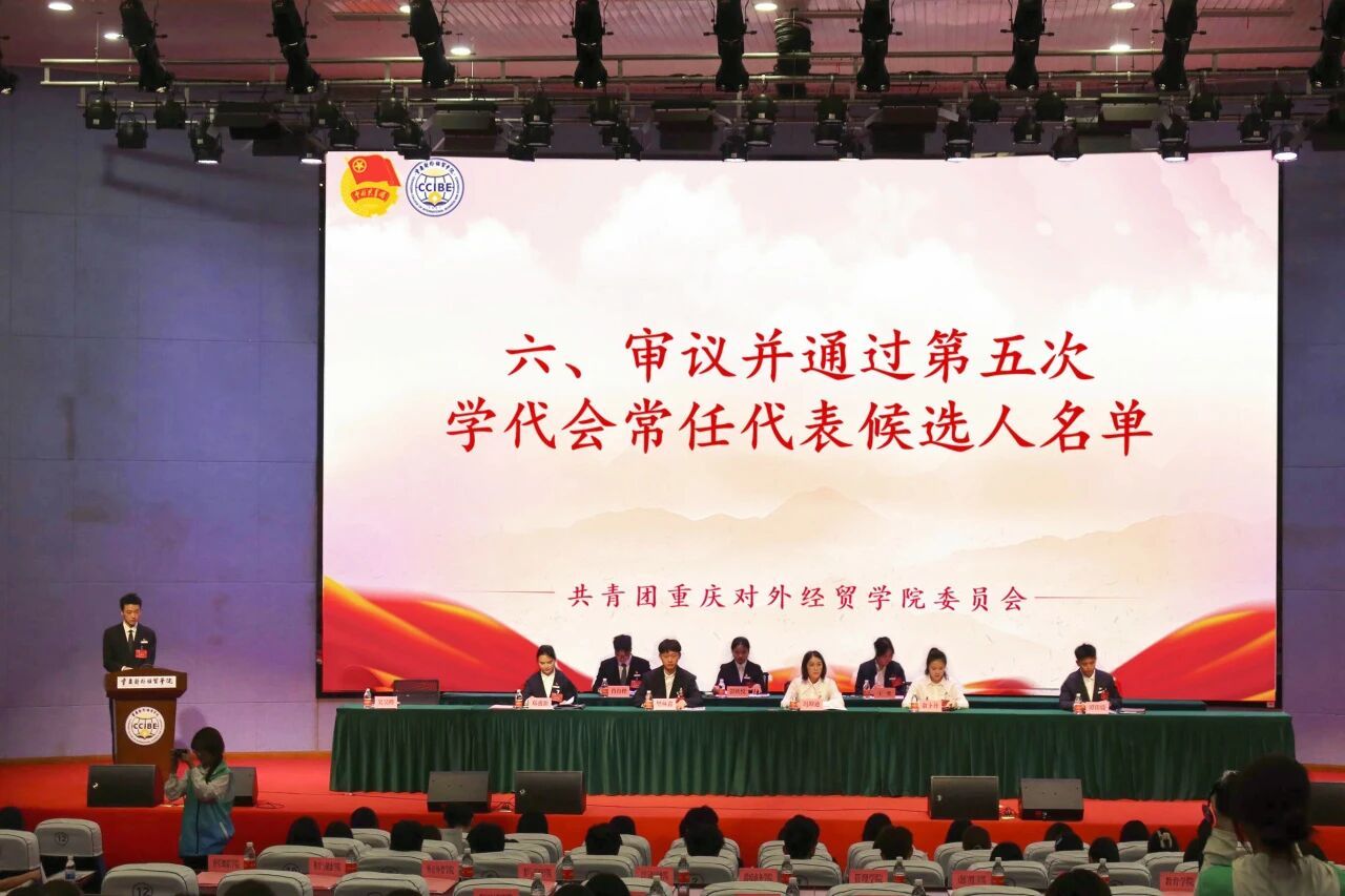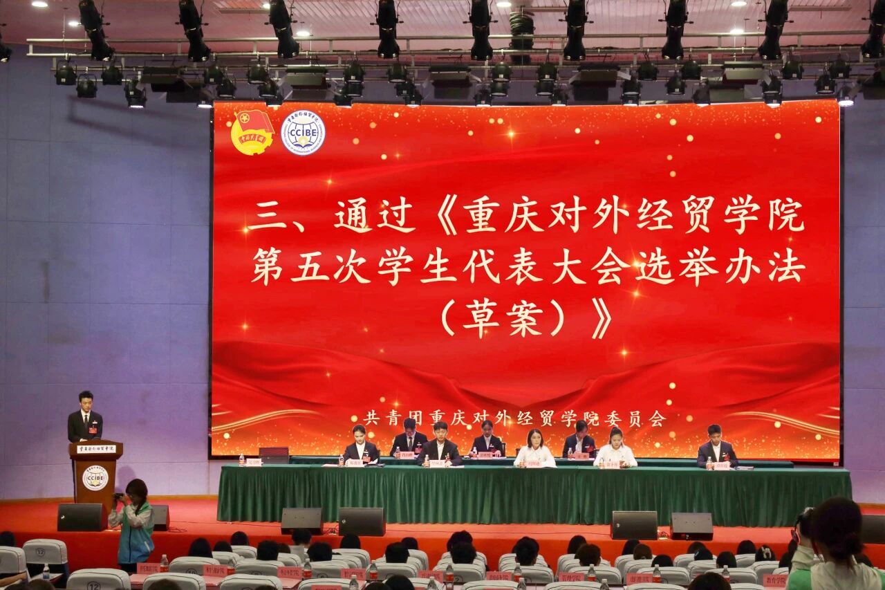 大会表决宣读并通过了《第四届学生会工作报告》《提案工作报告》《重庆对外经贸学院第五次学生代表大会选举办法(草案)》以及总监票人、监票人、总计票人、计票人名单。
