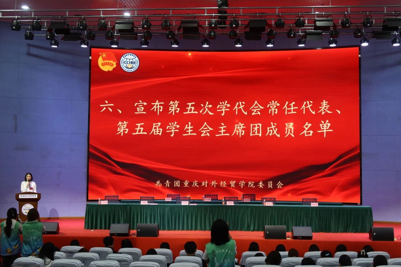 重庆对外经贸学院第五次学生代表大会的圆满结束,标志着学校学生工作迈入了新的发展阶段。新一届学代会常任代表和学生会主席团成员将肩负起时代赋予的使命,以饱满的热情和昂扬的斗志,投入到为学生服务的工作中。相信在全体师生的共同努力下,重庆对外经贸学院的学生工作必将取得更加辉煌的成绩,广大同学也将在青春的赛道上跑出最好成绩,为实现中华民族伟大复兴的中国梦贡献青春力量!