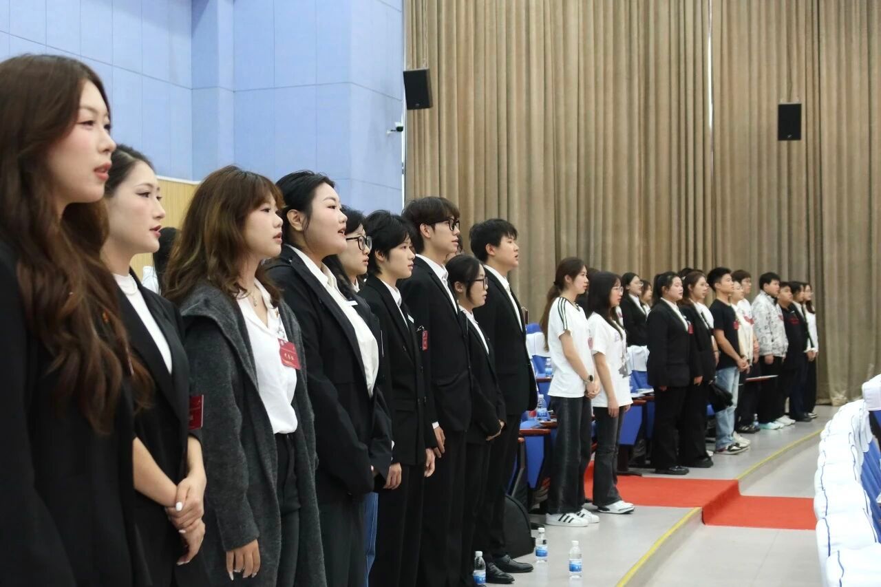 全体师生共同起立,奏唱中华人民共和国国歌,正式拉开了本次学代会的序幕。