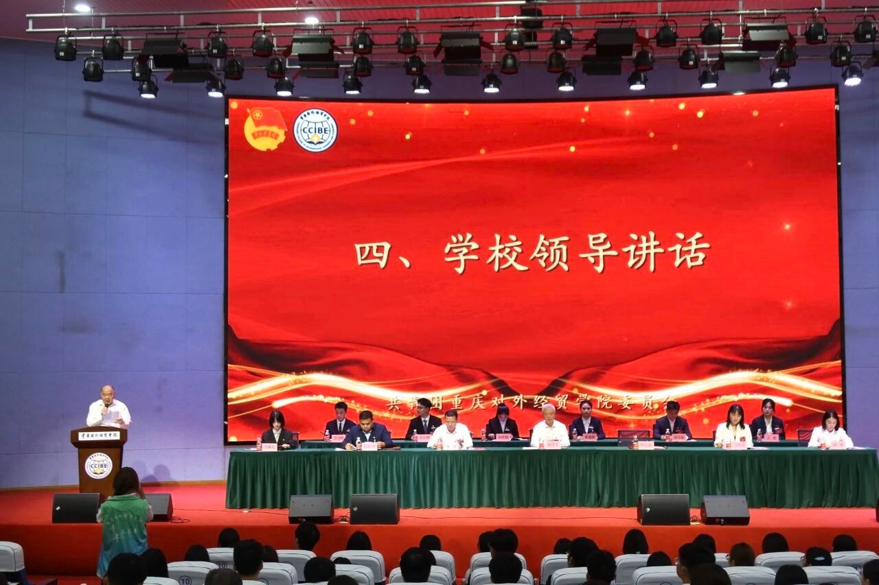 【本网讯】2025年10月16日,重庆对外经贸学院第五次学生代表大会(以下简称学代会)于合川A校区9101报告厅顺利召开。重庆对外经贸学院校长孙泽平,党委书记、督导专员何大海、副校长李川、组织部部长梁修昌、宣传部部长史丽涛、校团委副书记冯斯迪,重庆市学生联合会驻会执行主席邢琳悦,二级学院团总支书记、重庆移通学院学生会主席团成员、重庆人文科技学院学生会主席团成员、重庆工商大学派斯学院学生会主席团成员以及各位学生代表们参与本次大会。