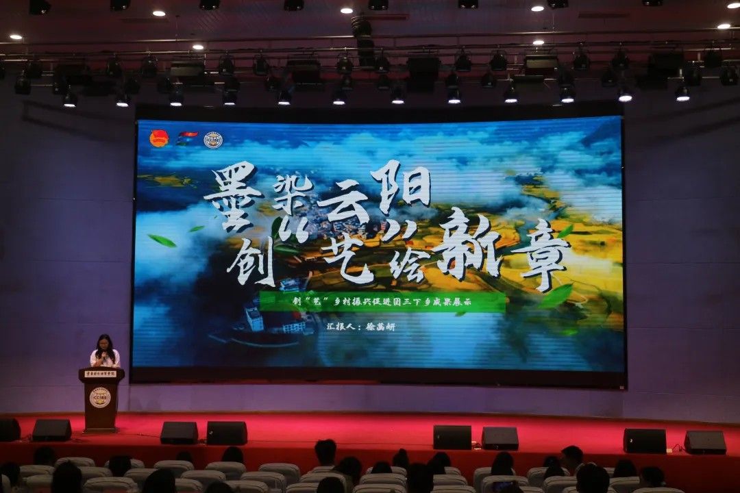 大会第三项议程,各实践团队依次上台展示社会实践成果。本次“三下乡”社会实践工作共组建20支队伍,在37名骨干教师带领下,279名优秀学子奔赴四川、贵州、江西、湖北向西延伸至甘肃、新疆等广阔地域扎实开展理论普及、民族团结、教育关爱、文化传承、乡村振兴等系列社会实践,用青春脚步丈量祖国大地,他们向我们展示了新时代青年将专业知识与基层实践相结合的丰硕成果。