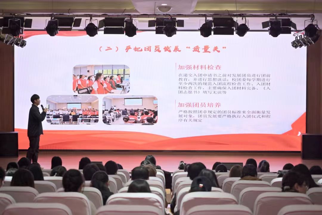 本次课程由团委干事樊林鑫讲授,樊老师主要围绕两大板块展开讲解。他以“3214”为框架,系统梳理了“三会两制一课”以及四项基础团务内容,帮助团学干部全面理解共青团基础工作的内涵与要求,为其在今后的团支部工作中打下坚实的知识基础。此外,他对学生会改革创新试点工作进行了深入解读,团干部要明确改革方向与实施路径,并鼓励大家积极响应、投身学生工作,在实践服务中锻炼能力、提升自我。