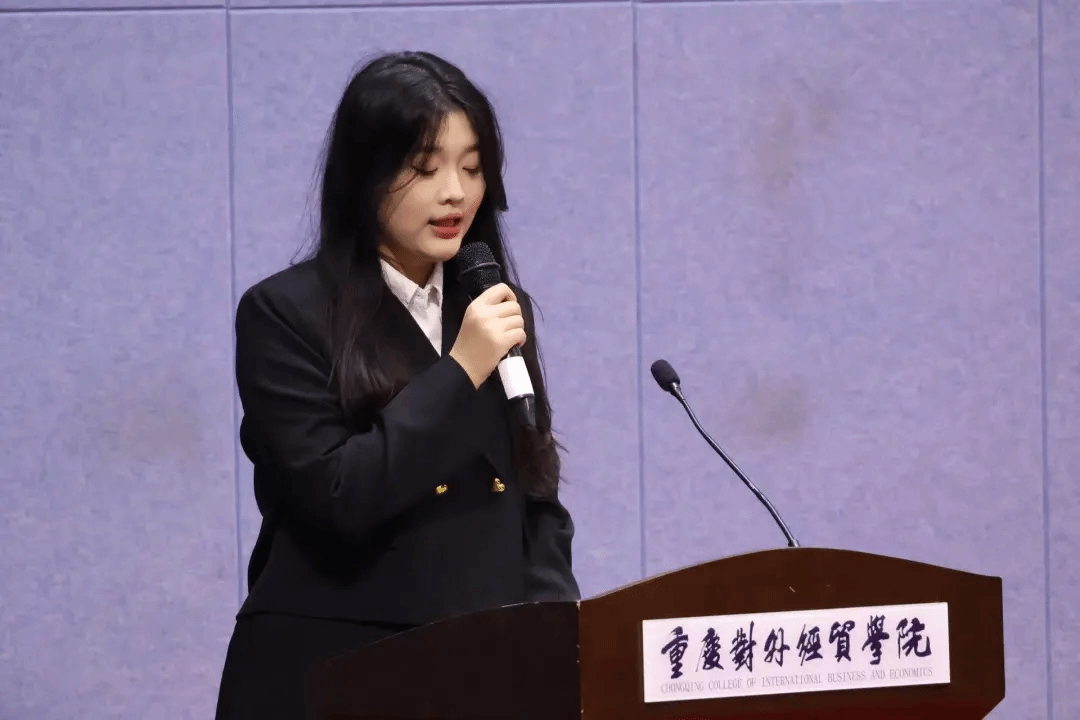 学生兼职团委副书记胡巧琳作为新一届校级学生组织代表上台发言,她回望过往团学工作硕果,致谢师长与伙伴。未来,新一届学生组织将以产教创融合理念为指引,深化思想引领,深耕科创赛事与社会实践活动,依托“第二课堂”赋能青年全面成长,传承上一届学生组织的优良作风与精神,扎根蓄力、逐光而行、薪火相传、华章永续。