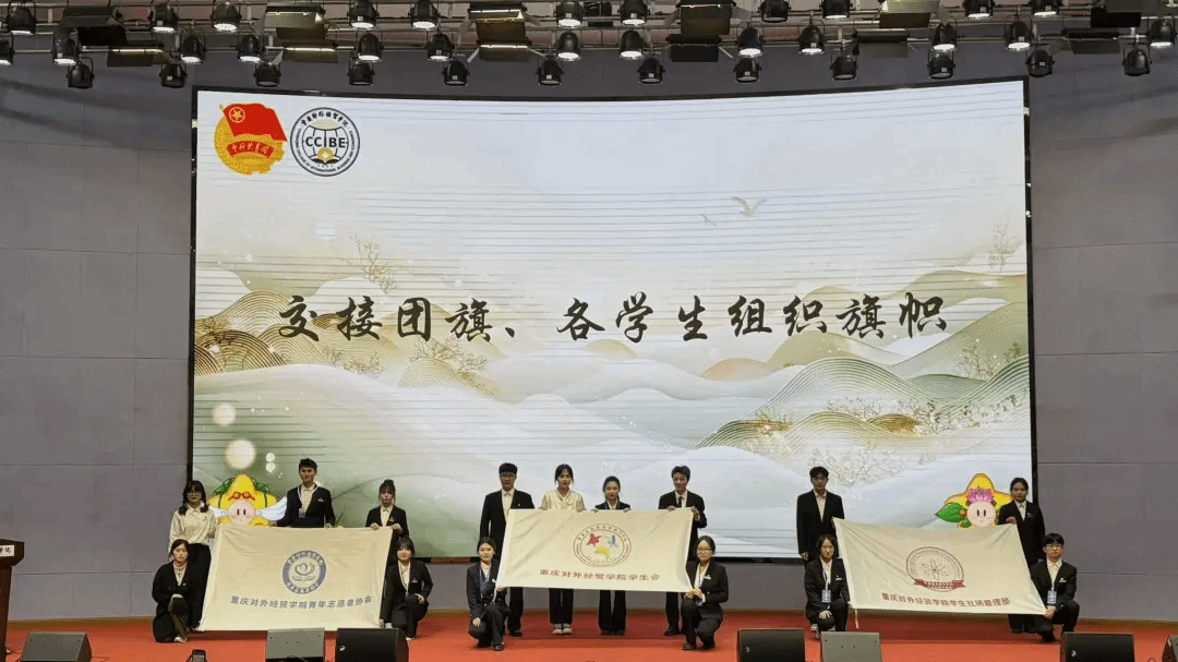 旗帜的传递象征着使命的延续,既承载着前辈们的奋斗精神,也寄托着对新一届成员的殷切期望。愿新团队接过这面凝聚责任与梦想的旗帜,用创新之姿续写辉煌,共同为校园发展贡献青春力量。