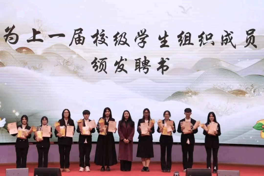 山高水长,映照初心,弦歌不辍,共创未来。本次校级学生组织换届大会,是一场传承初心、接续使命的青春盛会,它不仅为校园学生工作注入了新鲜血液,更搭建了新老成员交流互鉴的桥梁:既让上一届的坚守与奉献得到致敬,也让新一届的责任与担当得以明确。从聘书颁授到旗帜交接,从誓言铿锵到蓝图绘就,每一个环节都凝聚着对过往的感恩、对当下的笃定与对未来的期许。希望新一届学生骨干以换届为契机,传承优良作风、凝聚青年力量,推动学生组织在薪火相传中迭代成长,在凝心聚力中续写新篇,为校园建设与青年成长注入持久而强劲的青春动能。