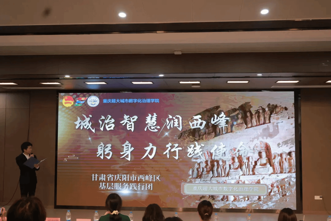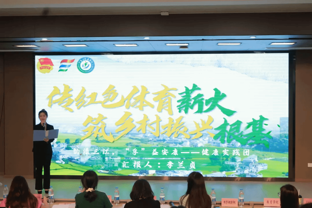 大会进行第三项,宣布成绩。由团委干事封灿老师宣读本次2025年暑期“三下乡”社会实践活动团队申报答辩会的得分情况。