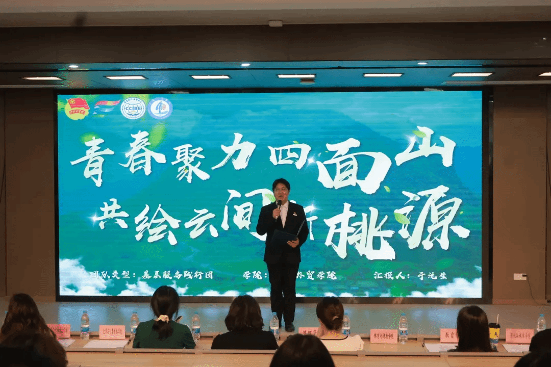 共青团重庆对外经贸学院委员会于2025年6月5日15:00在合川B校区1113举行的重庆对外经贸学院2025年暑期“三下乡”社会实践活动团队申报答辩会取得圆满成功。重庆对外经贸学院团委副书记冯斯迪(主持工作)、各二级学院团总支书记和团委干事出席团队申报答辩会。参加本次申报答辩会的共有18支队伍,各团队涵盖非遗传承、文艺活动、乡村振兴、民族团结、教育关爱等多个领域。