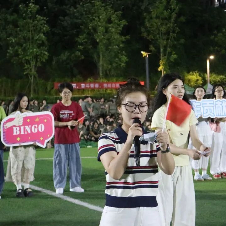 直到夜幕降临,我们用一场别开生动的军训宣讲会,与同学们温暖邂逅。舞台之上用一场活力四射的舞蹈打开宣讲序幕,展现出校学生会成员的青春朝气与活力。随后,校学生会主席团成员结合自身经历,以生动有趣的方式讲解各部门特色,让同学们对校学生会有了更深刻的认识与向往。