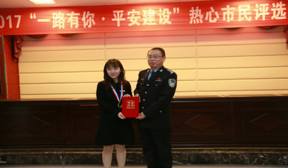 11月1日上午,“一路有你·平安建设”热心市民组委会正式授予魏涵睿月度热心市民称号。颁奖仪式在我校行政楼大会议室举行。我校常务副校长王乃武,市慈善总会宣传部副部长曾绍伦、市公安局政治部宣传处副处长沈科桦,合川区委宣传部副部长李卫明、合川区委政法委纪检组长张孝荣、合川区公安局党委委员、政治处主任何健,热心平安建设企业:重庆希尔安药业有限公司总经理陈犁,志愿者、群众代表200余人参加颁奖仪式。
