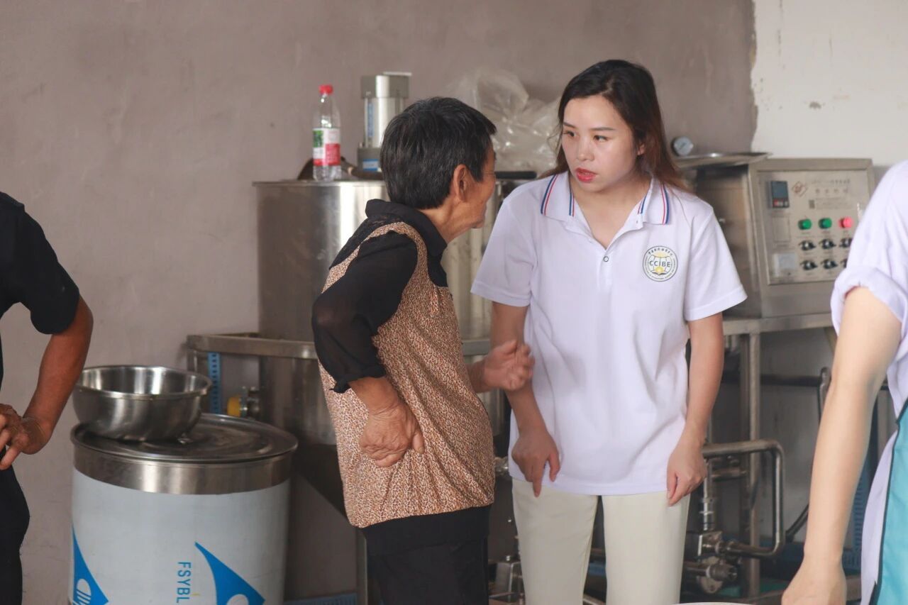 在榨油厂工作人员的指导下,团队成员系统学习了各工序的标准化操作规范,并深刻认识到:通过科学执行原料筛选、机械压榨、精炼提纯等环节,既能依托科技手段优化传统加工模式,又能有效提升油菜籽的加工效率与油品质量。