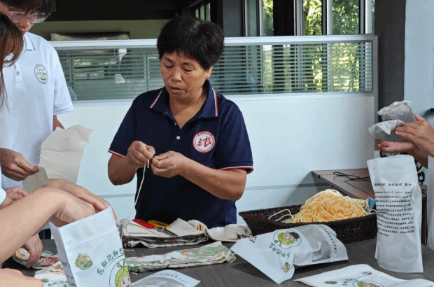 在花椒泡脚包的包装环节,促进团成员形成“取料定量—规范分装—密封加固—核对摆放”的连贯流程,整个操作环环相扣、标准统一,确保打包工作高效完成。