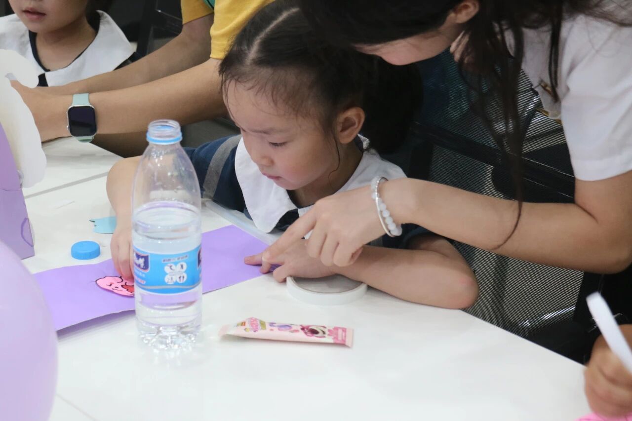 彩纸卡片在孩子们手中化作贺卡花束,手工区暖意满满。
