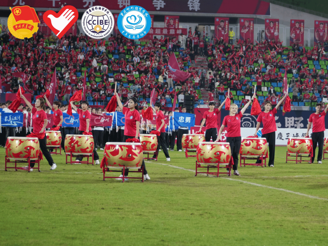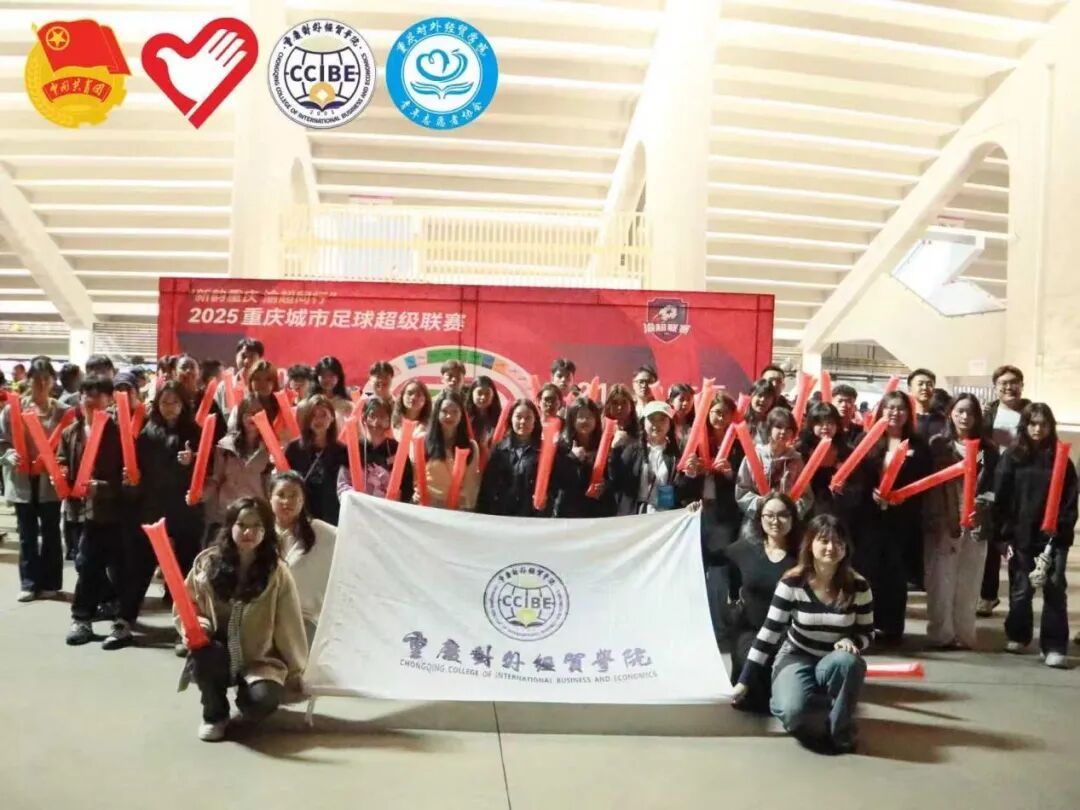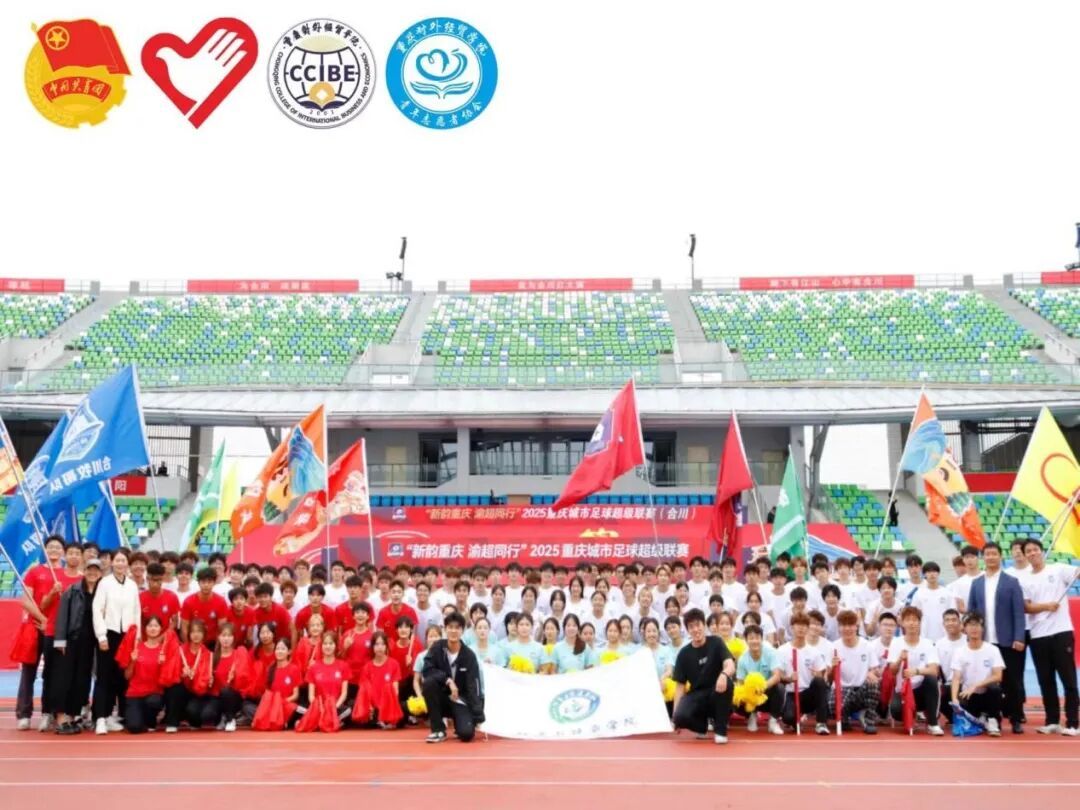 【本网讯】2025年10月18日,由重庆市体育局、合川区人民政府联合主办的2025年重庆城市足球超级联赛合川区首轮主场赛事,在合川区体育中心正式开赛。为保障赛事顺利开展、助力营造良好赛事氛围,重庆对外经贸学院选拔了唐瑞、石成靖、刘毅、陈俊楠4名学生加入合川牧哥队,并动员458名学子参与赛事服务工作,其中包括鼓手20名、舞旗团成员100名、啦啦操队队员18名、志愿者260名以及应援团成员60名。前期,我校招募并组织人员参与专项培训,全体参与学子以专业态度、细致服务为赛事保驾护航,助力书写足球盛宴精彩开篇。