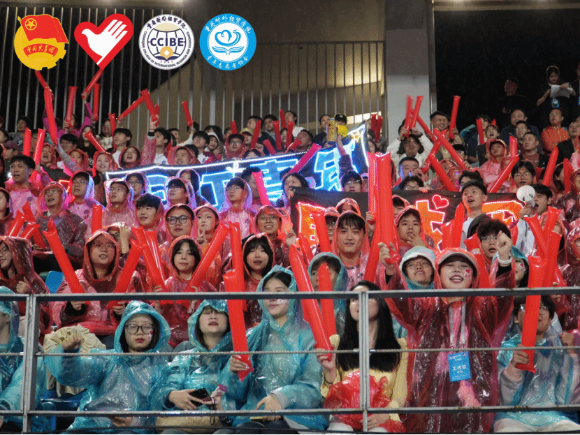 观众席上,由校团委以及各二级学院学生代表组成的应援团积极展开助威活动,全力营造热烈的比赛氛围。每当比赛进入关键节点,应援团成员便齐声高喊助威口号,用激昂的歌声和热烈的掌声为合川牧哥队加油鼓劲。这不仅有效调动了现场观众的情绪,让赛场氛围更加活跃,还充分展现了贸院学子团结一心、积极向上的精神风貌,以及贸院青年永远昂扬向上的青春风采。