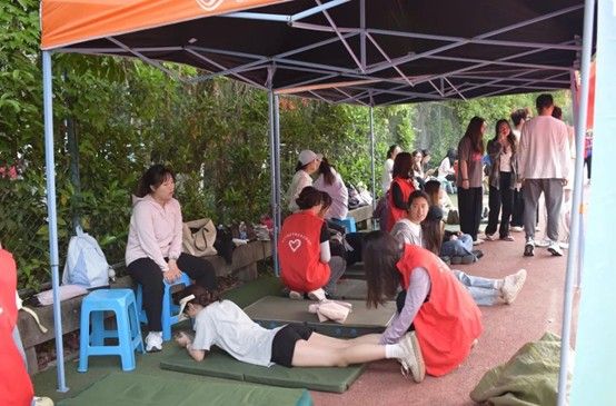 团委联合体育与健康学院设立的“健康校园行”服务点里,碘伏、云南白药、冰袋等应急药品一应俱全,专业医护人员和急救志愿者随时待命,为每一次跳跃、每一次奔跑筑牢“安全防线”。