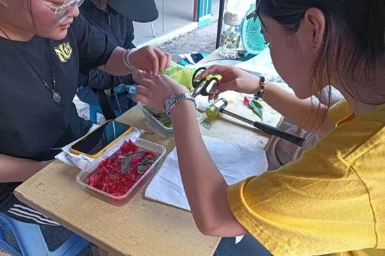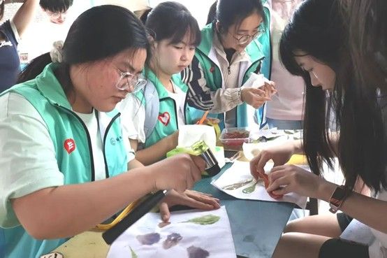活动现场,志愿者生动演示植物采集与处理技巧,用工具捶打、按压布料,在纸张上留下深浅、形态各异的植物印记。参与者分组领取材料,在志愿者悉心指导下,巧妙排列叶片、花瓣,亲手创作出独一无二的植物拓染作品。随后,全体参与者投票选出优秀作品,获奖者获赠精美小奖品。活动尾声,大家手持作品合影,定格这份自然与艺术交融的美好瞬间。