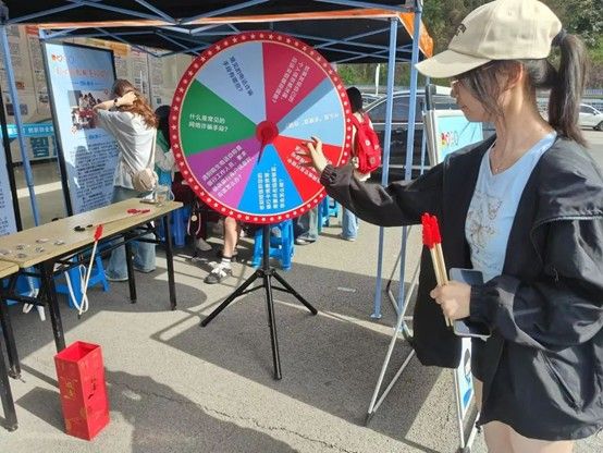 活动现场,参与者手持三支箭矢,凝神聚力挑战投壶,每一次成功投中都引发阵阵欢呼,赢得转动大转盘、解锁反诈知识问答的机会。转盘停止后,例如“如何识别网络刷单骗局”“遭遇冒充公检法诈骗怎么办”等实用问题接连抛出,有人对答如流,将反诈钥匙扣收入囊中;有人虽回答错误,却在工作人员的耐心讲解中,补足知识盲区。