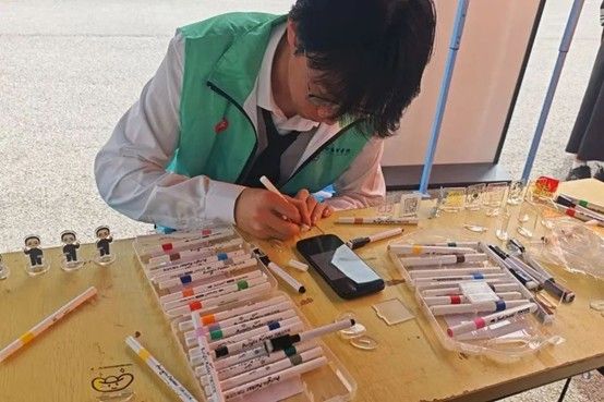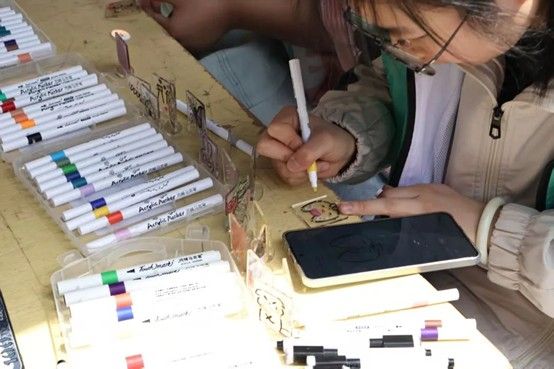 活动现场,参与者们手执毛笔,参照精心准备的书法范字与模板,在杉木片上挥毫泼墨。有人写下励志箴言,有人临摹经典名句,每一笔都饱含着对书法艺术的热爱。创作结束后,大家可以选择将承载着个人心意的作品带走珍藏,或是留下参与公益展示,让墨韵流淌的温暖传递给更多人。活动还准备了明信片,它宛如一条情感纽带,参与者们在上面写下真挚寄语,将善意与温暖传向远方。