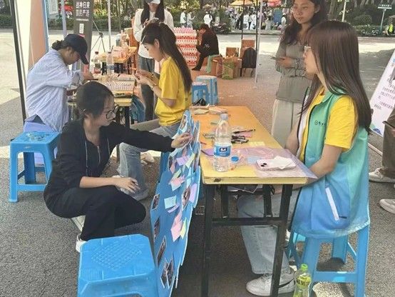 此次活动,满载心意的便利贴整齐排列在摊位,成为一道温暖的“回忆长廊”。它让爱与感动在光影与文字间永恒流转,为构建温暖和谐校园贡献我们的力量。