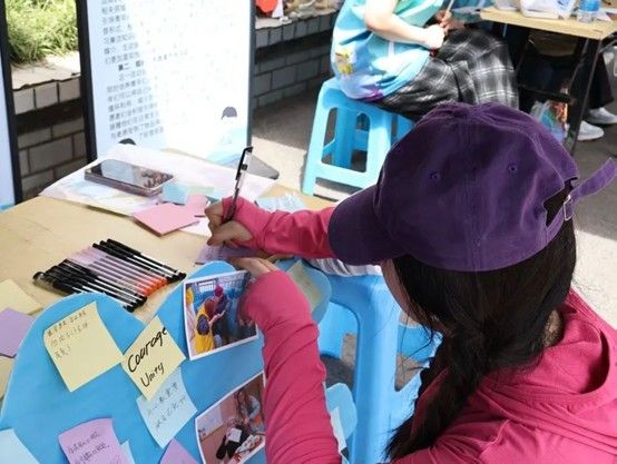 活动现场,一个个志愿服务的珍贵瞬间在摊位前徐徐展开,吸引参与者的目光。参与者驻足欣赏照片,并在便利贴上写下对奉献时光的感悟与祝福,将内心的触动娓娓道来。一句句饱含温度的话语,不仅是对志愿岁月的深情回望,更凝聚着对未来公益之路的美好期许。