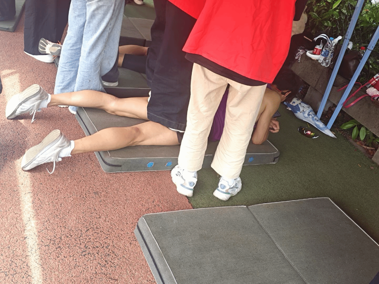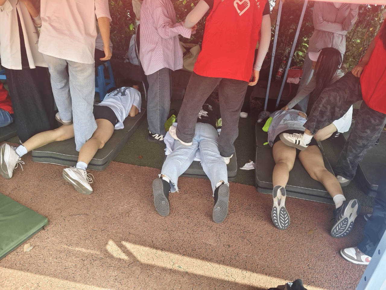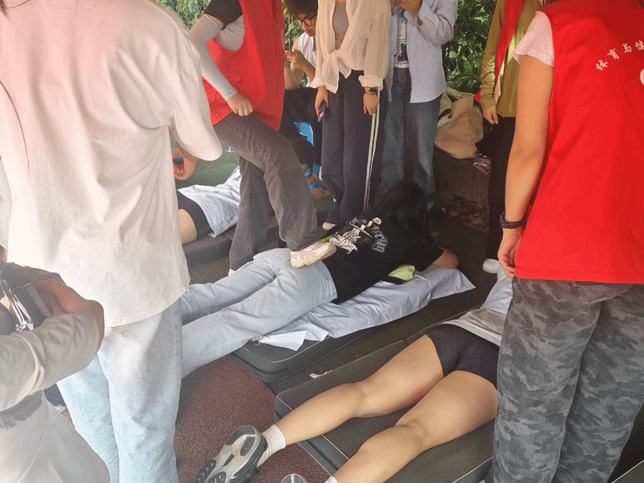 由校团委与体育与健康学院联合开展的健康校园行活动也在顺利进行中,志愿者们为赛后运动员们贴心地按摩拉伸。
