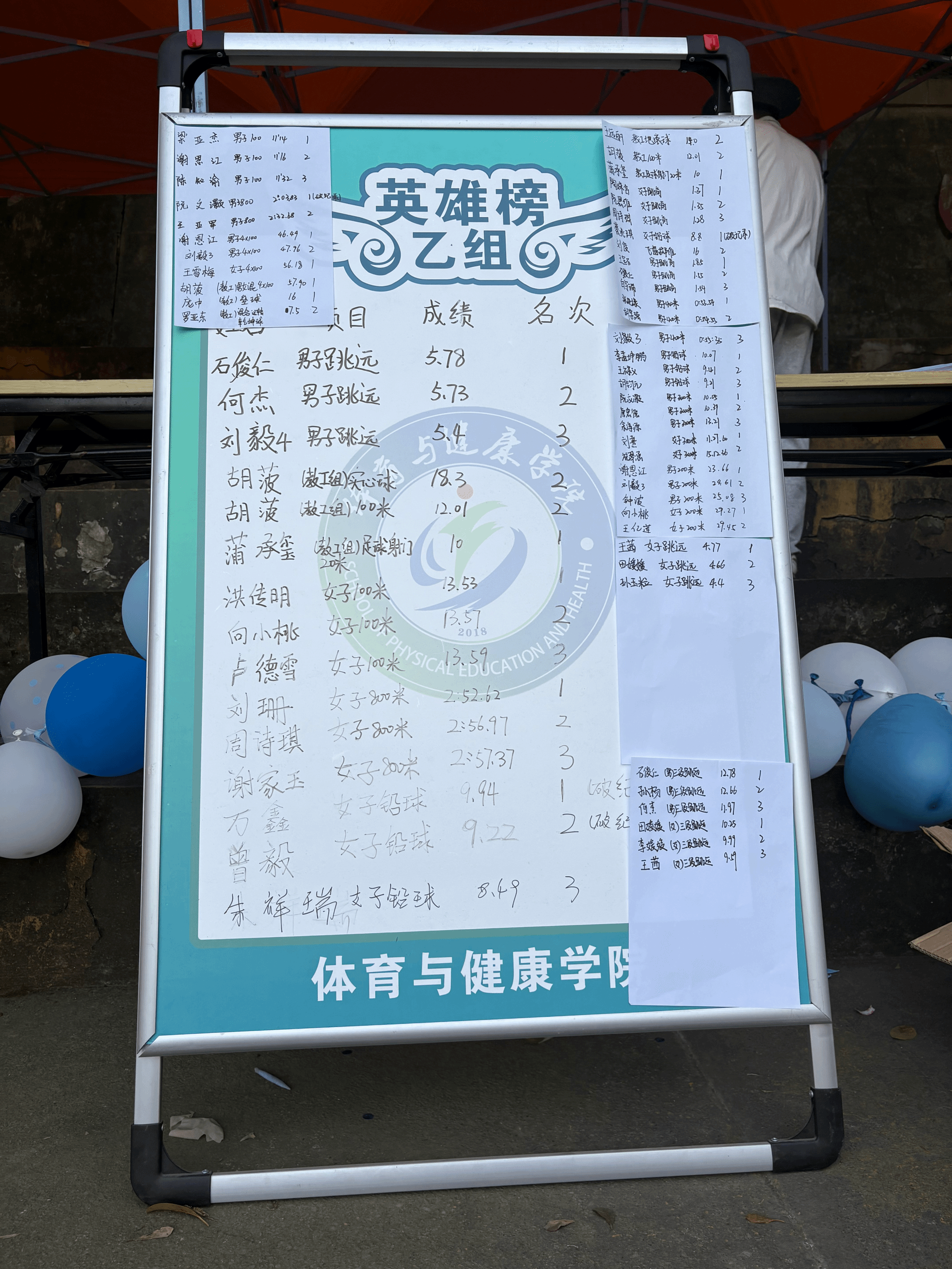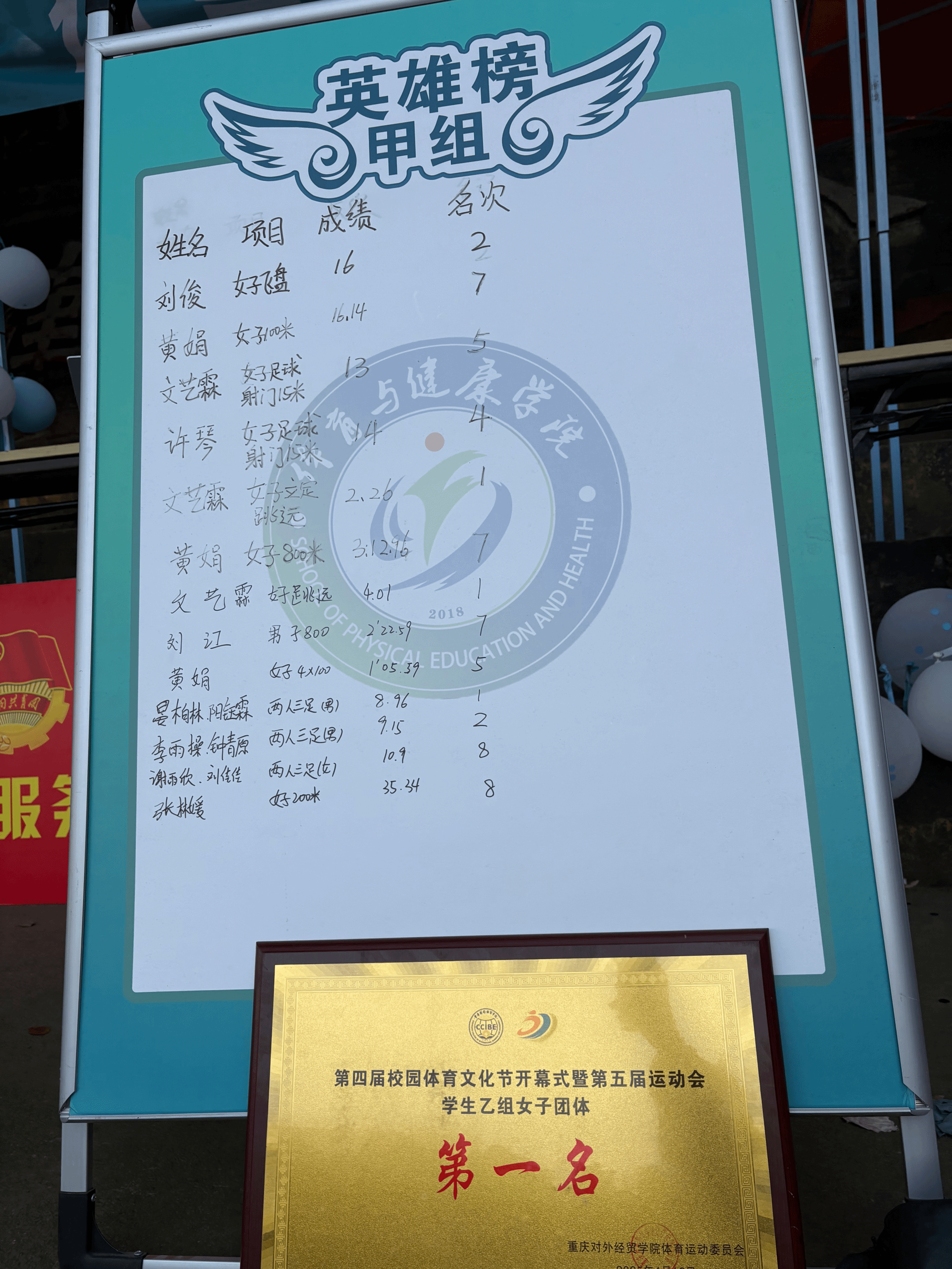 (图为体育与健康学院成绩榜)