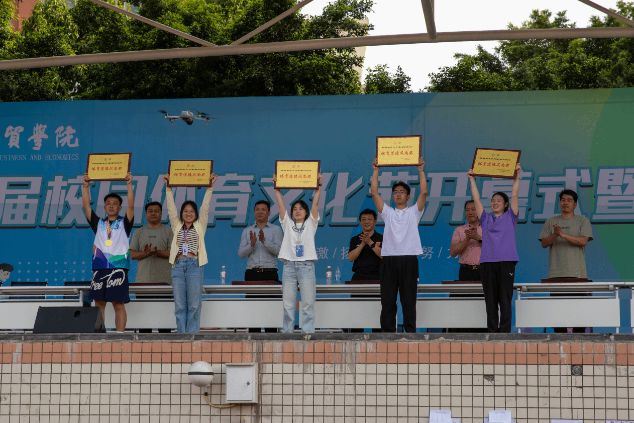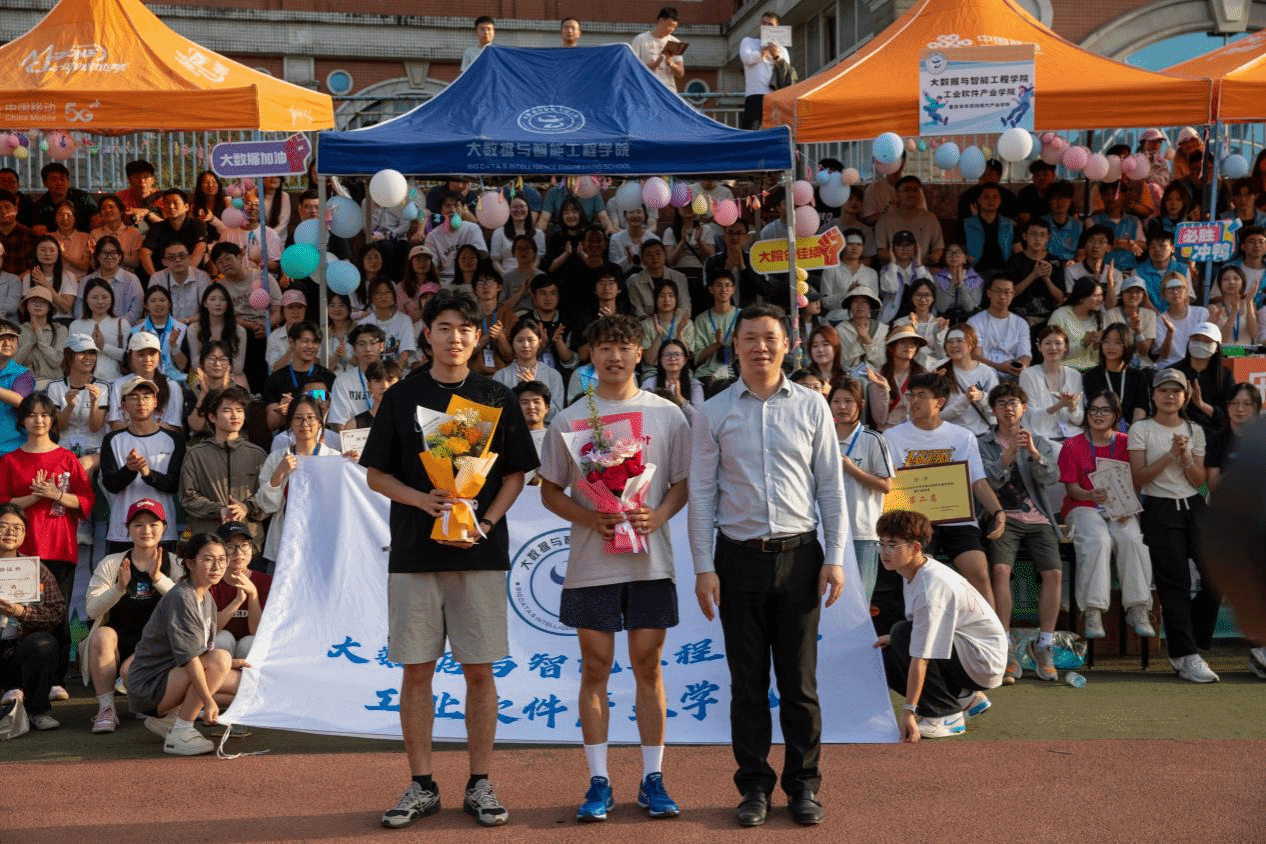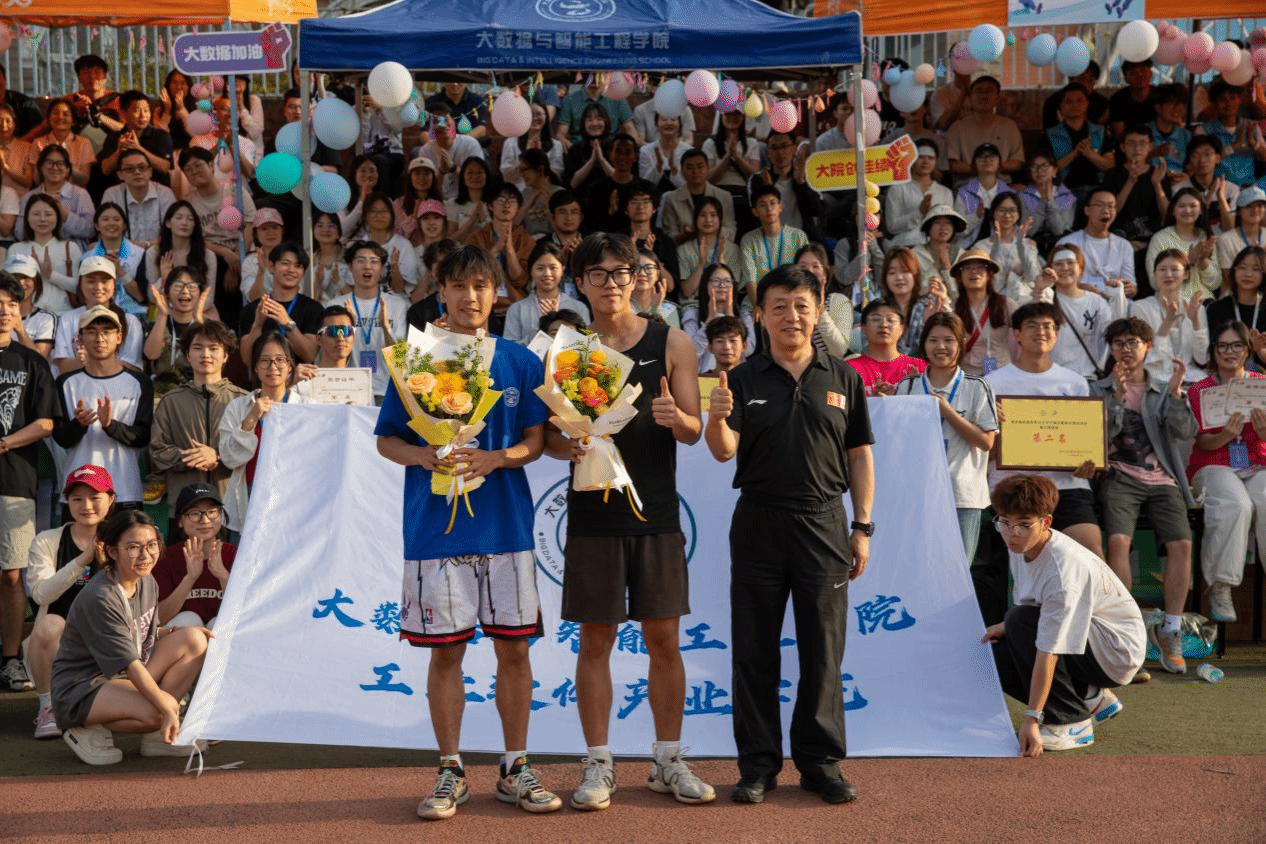 经过大家的辛苦付出和奋力拼搏,大数据与智能工程学院取得各项荣誉:体育道德风尚奖、教工组团体第二名、女子组团体第三名、男子组团体第一名,闭幕式结束后,学院邀请副校长李辉、校体委主任李川为学院获奖运动会进行颁奖仪式。
