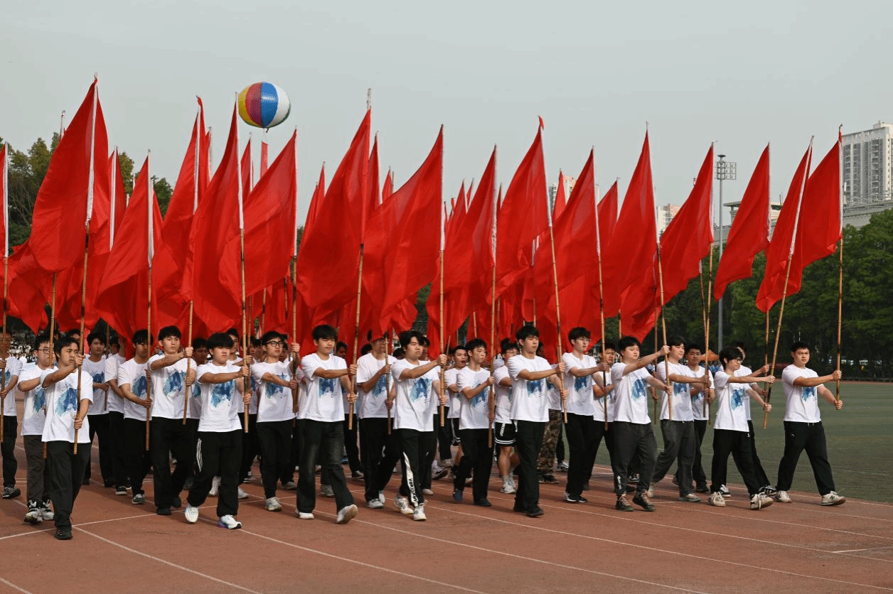 运动会开幕伊始,大数据与智能工程学院彩旗队手持耀眼红旗,以整齐划一的步伐和队形变换,为全场带来了一场视觉盛宴。他们用青春活力演绎着"数据流动"的科技美感,展现了我院学子的良好精神风貌。这支朝气蓬勃的队伍,用飘扬的旗帜为运动会拉开了精彩序幕。