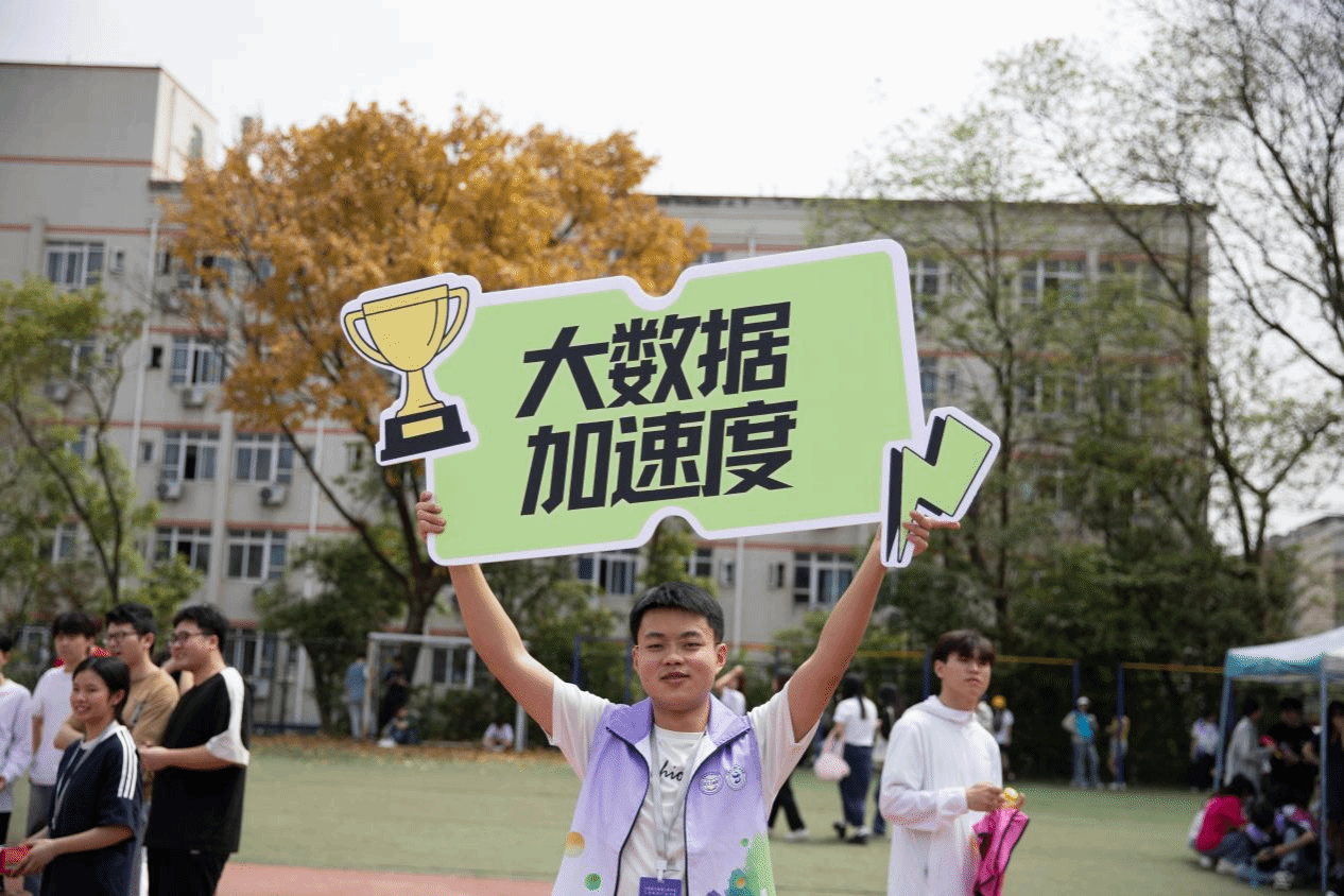 在沸腾的运动赛场上,除了奋勇争先的运动健儿,更有一道道动人的风景线在场边绽放。看台上,“大数据,加油!”的呐喊声此起彼伏。在赛道的每一个关键点位,都能看到志愿者们忙碌的身影。起点处,他们仔细核对参赛信息;赛道旁,服务组的同学严阵以待;终点线上,接待组的志愿者早已准备好热水。正是这些此起彼伏的加油声、一遍遍挥舞的院旗、一次次细致的服务,构筑起运动会上最坚实的后盾。
