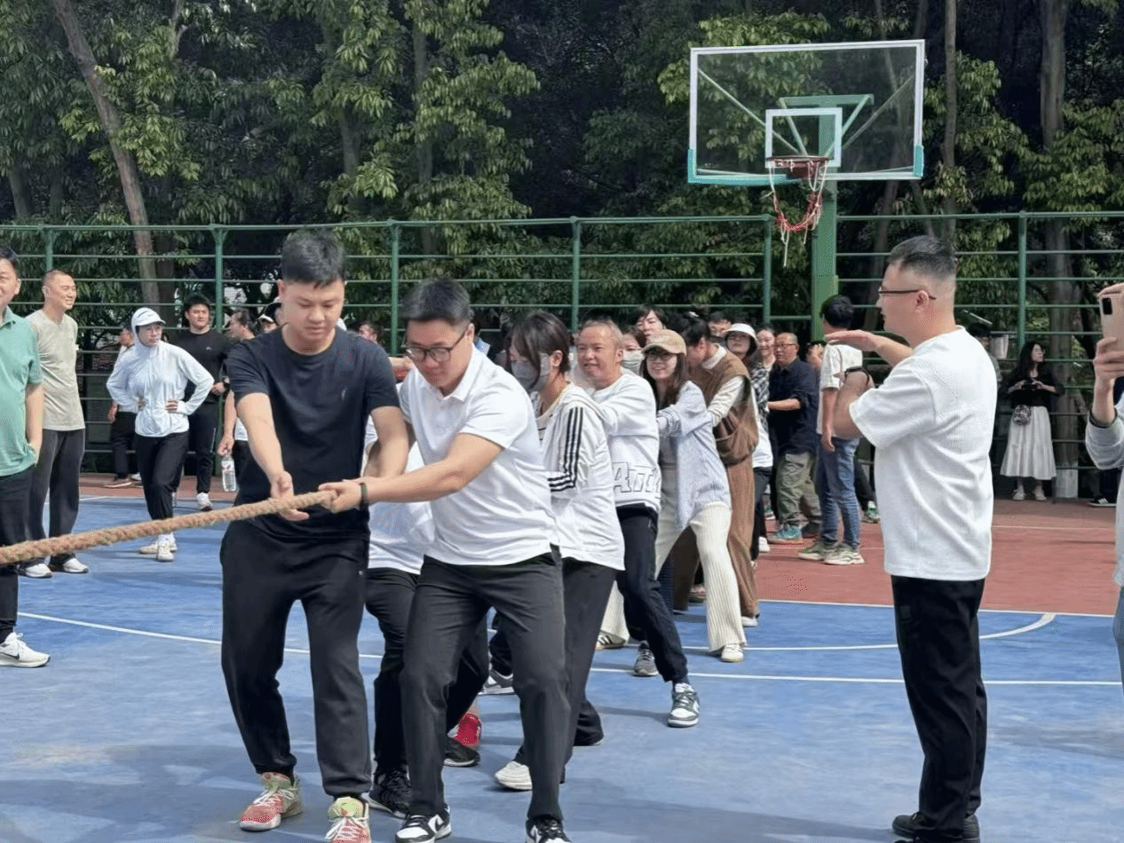 在团队项目中,艺术设计学院的同学们更是将团结协作的精神发挥到极致。4×100米接力赛中,四位选手配合默契,交接棒流畅精准,每一棒都承载着队友的信任与期望,全力冲刺为学院争光。拔河比赛现场,参赛队员们紧握绳索,齐心协力,在响亮的口号声中奋力拼搏,充分体现了团队的强大凝聚力和战斗力。