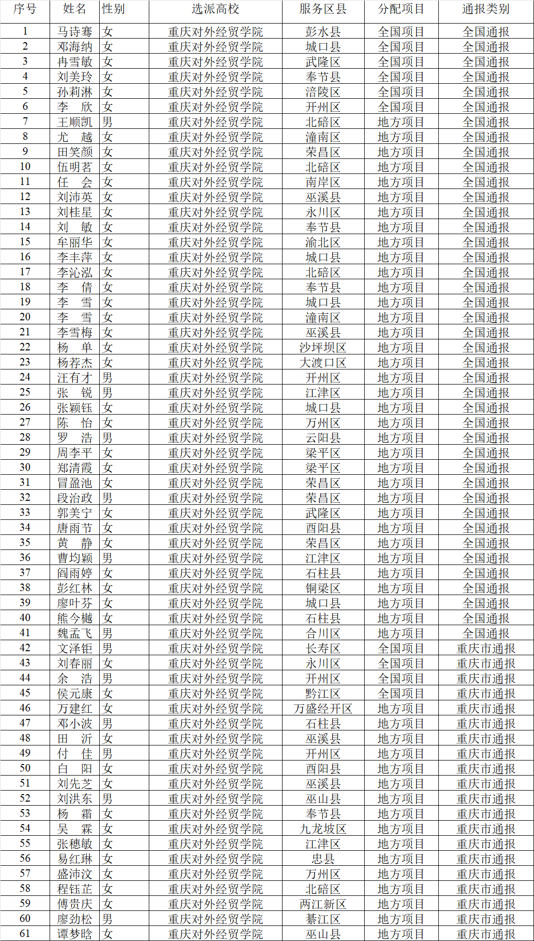 从培育时代新人到服务西部发展,重庆对外经贸学院始终以责任为炬,照亮青年成长之路。未来,我校将继续为学子搭建服务国家战略的平台,助力更多贸院青年在西部大地书写青春答卷,让奉献的种子在祖国需要的地方持续生根发芽。