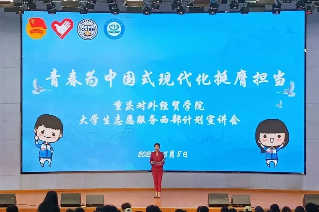 2025年5月8日,校团委通过举办“青春为中国式现代化挺膺担当”——重庆对外经贸学院2025年大学生志愿服务西部计划宣讲会,并邀请团沙坪坝区委副书记张德丽、团合川区委副书记张洋、团酉阳县委副书记吴杰、江北区西部计划项目办工作人员、武隆区西部计划项目办工作人员、往届西部计划优秀志愿者进行宣讲,通过现场分享、交流互动以及西部计划报名、笔试、面试环节情景剧演绎的方式为同学们提供宝贵经验并答疑解惑,让同学们对西部计划有更加全面的了解。
